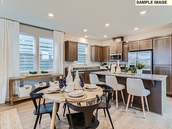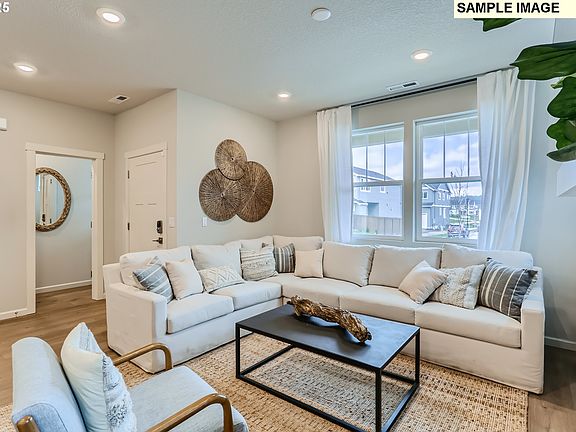This new construction home is located in a serene community surrounded by protected wetlands and walking distance to several local parks and trails, with easy access to Fern Ridge Lake, grocery stores, schools, and restaurants. The Clark plan features an open-concept kitchen, dining nook, and fireplace-warmed great room that flows to a covered patio, with four bedrooms upstairs including a primary suite with soaking tub, walk-in closet, and private primary bath. Interior highlights include quartz countertops, shaker-style cabinets, LVP flooring in the kitchen and entry, LVT flooring in the baths, two-tone interior paint, fencing, and landscaping with irrigation. This home also includes central air conditioning, a refrigerator, washer and dryer, and blinds—all at no extra cost! Located on homesite 13, this home is move in ready. Rendering is artist conception only. Photos are of a similar home, features and finishes will vary. Below-market rate incentives available when financing with preferred lender.