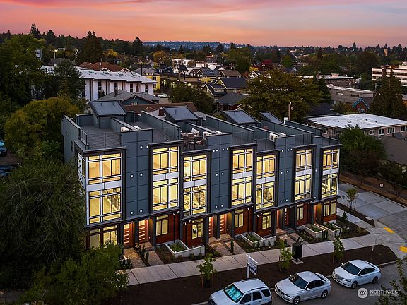 Welcoming a contemporary new construction home centrally located in Wallingford w/ultra-dynamic views of the Seattle Skyline, Mt. Rainier & S Lake Union W/LARGE ATTACHED GARAGE. Boasting a functional floor plan &eco-friendly design w/an abundance of natural light flooding each room. Chef's kitchen w/SS appliances, sleek slabs of quartz &state-of-the-art solid wood floating staircase. Spacious top floor primary suite w/deluxe spa-like bath. Second bedroom on lower-level with own bath and flex/bonus space upon entry. Large roof deck with outstanding views of the City, Lake and Rainier. Located within mins of all Wallingford amenities: shops, boutiques, parks, breweries & more! Designated parking included. WalkScore of 91! 4-Star Built Green.