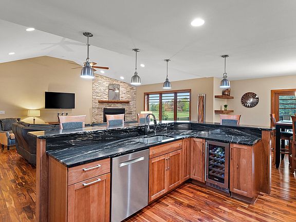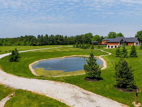 Welcome to your dream home! Nestled on a sprawling 7.49-acre estate, this stunning 3-bedroom, 2-bathroom ranch offers 2,185 square feet of luxurious living space. The home features a full, unfinished walkout basement constructed with Insulated Concrete Form (ICF) walls for superior energy efficiency and durability, extending through the main level walls as well. Step inside to discover the beauty of Acacia hardwood flooring that flows throughout the home. The living room boasts a cathedral ceiling, creating an airy and expansive atmosphere, while the dining room and main bedroom feature elegant tray ceilings. The main bedroom is designed with accessibility in mind, including 36-inch doors and a custom walk-in ceramic tile shower. It also includes a double bowl vanity with a quartz countertop and a custom-designed closet.Practicality meets convenience with a main floor laundry room and casement windows that enhance the home's aesthetic and functionality. Cozy up by the gas fireplace in the living room, easily controlled with a remote. Outside, the property is an entertainer's paradise. A 36x48 insulated pole barn, complete with a gas furnace, concrete floor, and 200 amp electric service, provides ample space for projects and storage. Relax and unwind by the 16x32 in-ground pool, featuring an electric cover, gas heating, and a secure fence. Adjacent to the pool, enjoy a soak in the hot tub while overlooking the serene pond. Additional storage is available in the 16x32 open storage shed, perfect for housing equipment and outdoor tools.This property is a perfect blend of luxury, comfort, and practicality, offering a lifestyle of tranquility and convenience. Don't miss your chance to make this exceptional home yours!