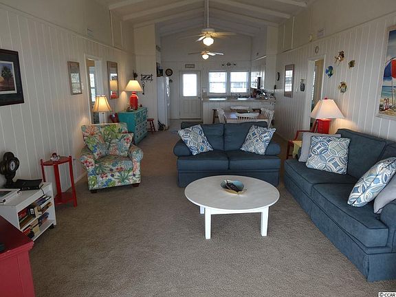 Welcome to "Carolina Cottage" on the ocean front in North Litchfield Beach. 5 bedroom and 3 bath, raised beach house, ready to be your primary home, 2nd home, or investment property (gross rental incomes on file for 2015, 2016, and 2017 projections). Sit on your 10 x 40 screened in porch and relax as you look at the beach, ocean, and natural wildlife, while enjoying your morning coffee or favorite afternoon beverage. 4 bedrooms and two baths upstairs and 1 bedroom/extra living space and 1 bath downstairs. One recent HVAC and 2 recent air handlers, new carpet in 2016, recent furniture indoors to include beds, couches, and some bedroom furniture, ceiling fans with lights throughout, and recent outdoor furnishings as well. Recently replaced decking on the walkway towards the ocean, improved landscaping, and pea gravel driveway. Flat screen TV's in great room, master bedroom, and downstairs bedroom/living area. Plantation shutters and upgraded blinds throughout home. Recently replaced microwave and washing machine. His and her outdoor showers to wash the sand off after a day on this beautiful North Litchfield Beach. Solar powered lighting on deck rails. Make your appointment today to see this great beach house today!