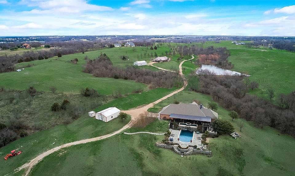 Incredible views on this 89 acre ranch with 2 beautiful homes and a separate apartment located on the Bluebonnet Trails of TX approximately 40 min from Dallas.The main house was built in 2003 and has 3 bed, 3 bath, 2 car garage.Open living to the kitchen and dining area.Huge back patio with an outdoor kitchen and a wonderful view of the hot tub with a 6 ft water fall into the large diving pool. The second home was built in 2008 and has 3 bed,2 bath with a mud room area that has a shower.The barn near the second home has a 1 bedroom apartment with a handicap accessible shower.There are 7 ponds, 2 barns, a hay barn,5 horse pens each about 5 acres.Invisible fencing around each home. No developers allowed.