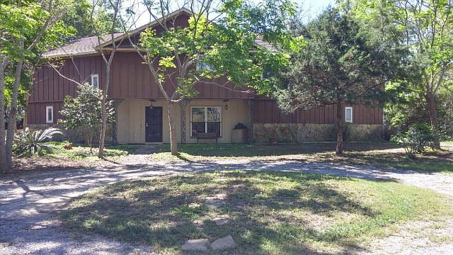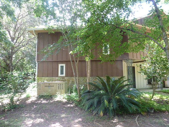 Room to roam on this 1.28 acre property!This unique home has 3 spacious bedrooms and 3 bathrooms. The open floor plan living area boasts a beautiful stone wood-burning fireplace, vaulted ceilings, built in beverage bar, built in entertainment center and plenty of room for family and entertaining. The covered 48x10 screened porch overlooks a huge,partially fenced back yard, graced with pecan & fruit trees with plenty of room for a pool or vegetable garden or both.Large family room downstairs adjacent to covered patio.Extra large laundry room including hook ups for utility sink.Custom made wrought iron banisters on stairway.Single car garage has electric door opener & is adjacent to 18X11 workshop.Storage at every turn,walk in closets,pantry & more. Minutes from downtown Fairhope,Mobile Bay & all Fairhope Schools.Tree lined driveway leads to your quiet yet close to everything hideaway.Home includes personal elevator & Generac Generator for power outages.Soldas is.