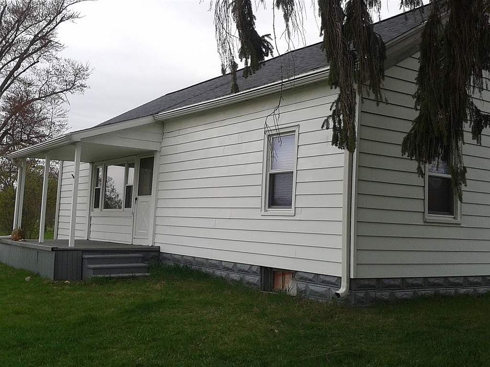 2 bedroom home with almost 10 acres on a main road. Large rooms and laundry on first floor. Covered concrete patio at the back of the house. Large older barn and large garage with lost of extra room for storage or a workshop. The high efficient furnace is newer as well as the windows. Priced to allow you to put your personal finishing touches where needed. Owner is willing to accept applications for financing or land contract. Come check out this farm today.