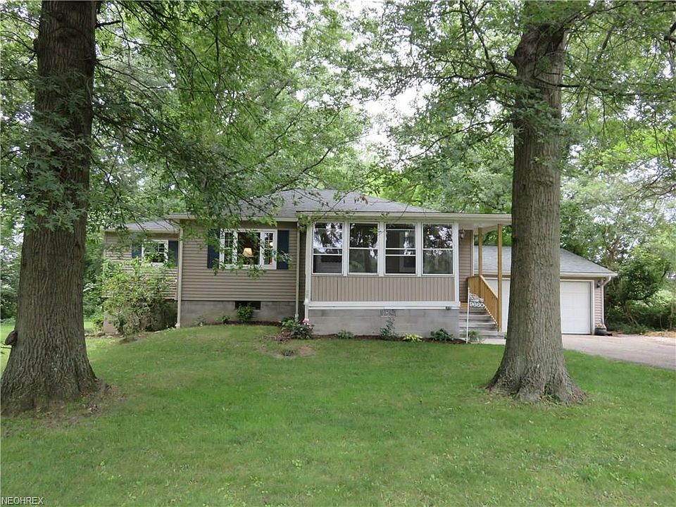 Just what you've been waiting for! Having your own private oasis surrounded by nature's beauty....Nestled among the trees, flanked by a picturesque ravine, this custom raised ranch boasts an idyllic country setting...deer and wildlife are frequent visitors. This country paradise is a rare find, located just minutes from all conveniences and highway access, on a gorgeous three-quarter acre wooded lot...The 3-bedroom, 2 bath home offers a charming enclosed front porch, which leads to the goodsized living room with gleaming hardwood floors, as well as an adjoining dining room. Step into the oversized kitchen where two large windows offer panoramic views of nature's wonderland in the backyard, perched overlooking the abundant greenspace below. The sizable kitchen makes an inviting gathering room, featuring plenty of wood cabinetry, new counters, and vinyl laminate flooring, and a door leads to the rear deck, a great spot for outdoor dining and entertaining! The 2-car attached garage has an additional overhead door on the back to pull extra vehicles, a boat or camper to the rear gravel area. Other recent updates include new carpet 2018, bathroom floors 2018, shower stall 2018, roof replaced (tear off) 2009, Carrier gas furnace 2015, breaker box 2018, newer vinyl siding, newer quality replacement windows throughout. New foundation for the front enclosed porch, new block steps & concrete pads, all in 2017. Garage completely rebuilt in 1993, new garage opener installed 2015.