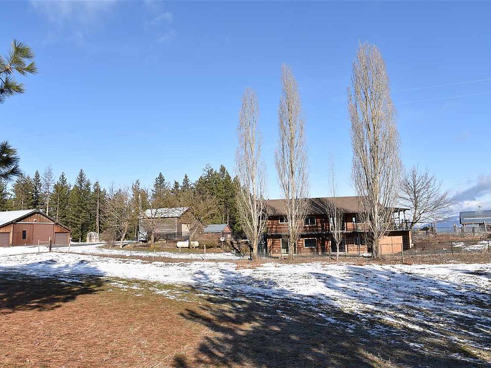 20 acre ranch with lake view . 2 bed 2bath log home renovated 2018. granite countertops wraparound porch new 40' X 65' 6 stall horse barn with electricity and water, 40'X36' barn, concrete floors and electricity, 58'x 93' Shop 40'x40' barn with electricity and cement floors. . approved for four 5 acre parcels 25 min from CDA Motivated Seller!
