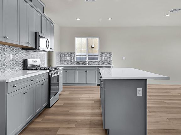 Home, and Amenities: Entertainer's delight! GORGEOUS UPGRADES- gray cabinetry throughout, with white quartz in kitchen, upgraded LED recessed lighting, Beautiful Vinyl plank flooring through all common areas. This stunning 3 bed 2 bath SINGLE STORY home features a large Kitchen Dining and Living area that is spacious and open, great for hosting gatherings. The community includes two neighborhood parks with gardens, basketball court, doggy park and a tot lot, for the homeowners to enjoy. Madeira is within walking distance of the highly rated Riverside schools. Located close to the I-215, Hwy 91 and Hwy 60, Madeira offers an ideal location for commuters. Residence will be able to enjoy shopping and dining and entertainment at Canyon Springs or the Galleria at Tyler Mall. Photo is a rendering of the model. Buyer can either lease or purchase the Solar.