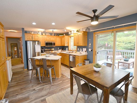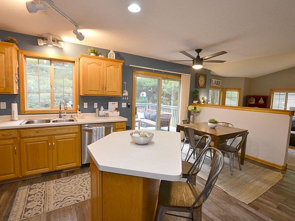 2.5, PRIVATE acres with tons of updates & a 30x40 outbuilding with 12ft tall slider doors! This home has been updated & is ready for you to enjoy. The bright, open kitchen & dining room overlook the vaulted living room with cozy fireplace. The spacious kitchen pantry features convenient roll outs. Raised panel cabinets & doors throughout the home. The primary bedroom has a spacious walk-in closet which walks through to the main bathroom. The lower-level walks out to the lush yard with inground sprinklers. Nice L shaped family room which has ample space to set up an office or gaming area. The roof & siding were replaced Feb. 2023. New furnace & AC in 2022. 2019 septic. 2021 Stainless steel kitchen appliances & washer/dryer. Updated lighting & some flooring. The outbuilding has electric plus the oversized doors are perfect for the camper, fish house, boat & all your toys! Becker Schools. Easy access to Hwy 10. Relax & enjoy your private deck. Don't miss this slice of paradise!!