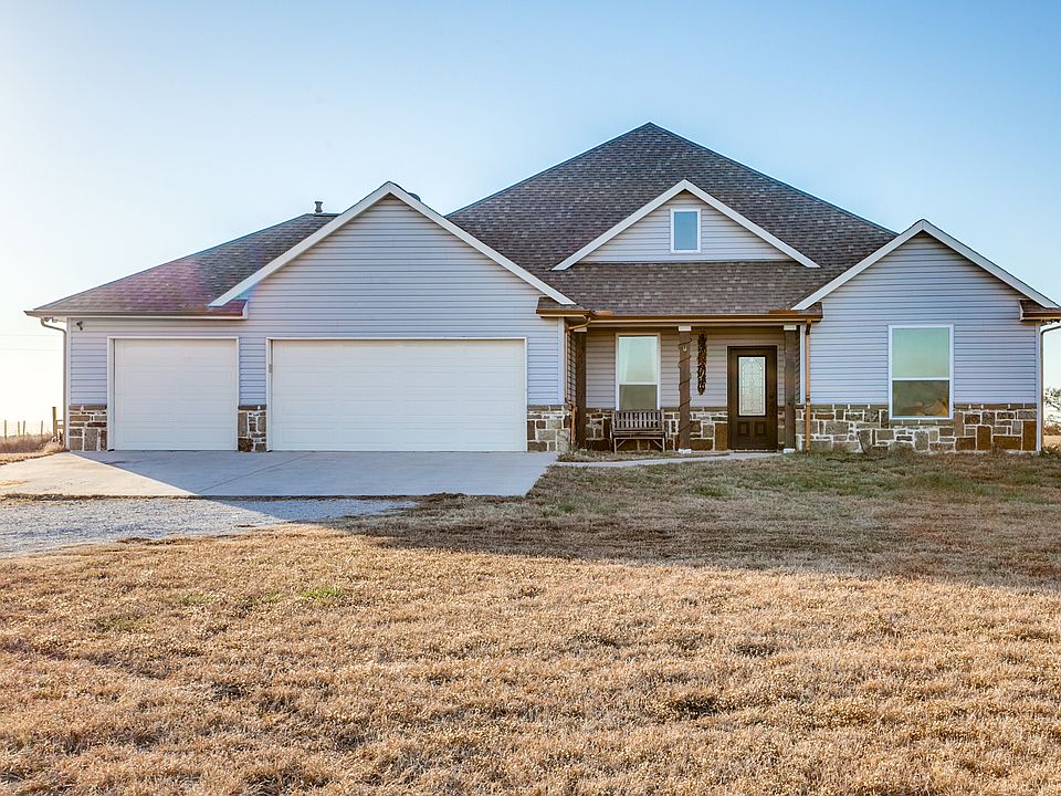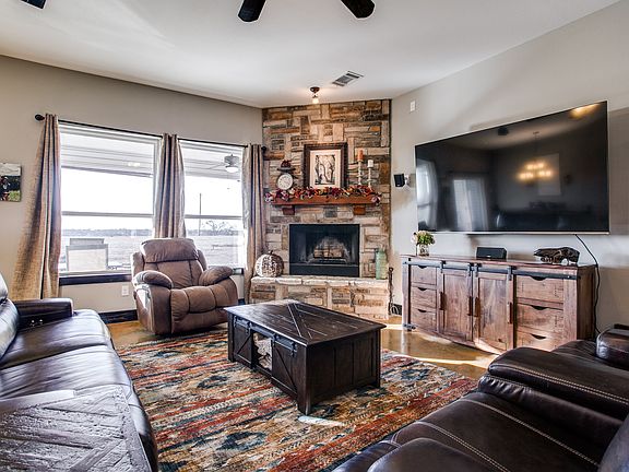 LUXURY LIVING UNDER THE STARS! This GORGEOUS vaulted 1 sty, 4.7 Acre home hosts 4 BR + Stdy & 3 Car Garage + 40x20 Carport- concrete slab, 50-amp RV hookup, electric & water! The kitchen was made for cookin'! Farmhouse sink, ample black cabinetry, double ovens! Lg granite island overlooks rm where you can cozy on over to the cascading stone fireplace for those cold evenings while you watch the breathtaking sunsets night after night. Master Suite features luxurious 6ft. Jetted Jacuzzi Tub, spacious shower with slate like tile, river rock pan, & rain shower head, dual sinks and walk in closet. Built in 2015, ENERGY EFFICIENCY features: Radiant Barrier, Tank-less WH, LED Lighting, & Energy Star GE Appliances.