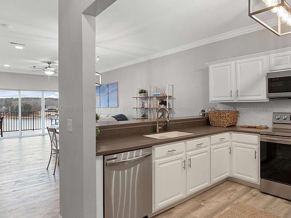 3 Bedroom, 2 Bath on 3rd floor of Building 2 (right bldg). Move in ready as everything stays. Upgrades: entry way, floors, countertops, appliances, kitchen, extra fridge, ice machine, paint.Professionally decorated w/high end furniture inside and out.Covered slip w/pole, bow, corner bumpers.Exterior of complex, docks refurbished in 2023.Rental history w/reviews avail.