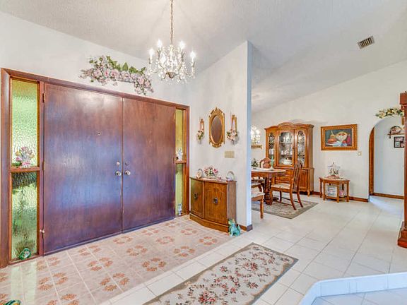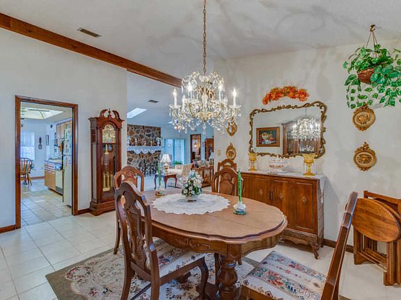Beautiful oak trees abound!! You will feel the warmth as soon as you step through the double doors! Tiled throughout and skylights brighten up this home. Holidays will be easy as you enjoy family dinners in the beautiful dining room and then retire to the huge family room. Loads of countertops and cabinets in the kitchen for the chef in you. Master en suite features dual sinks and a large walk in shower. Inside laundry room and screened in lanai make this such a pleasant happy home!!