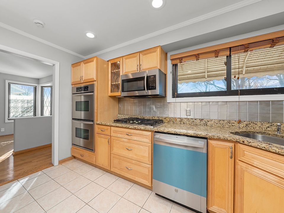 Hardwood floors throughout, open concept large new kitchen that comes with granite counter tops and stainless steel appliances, modern bathroom , spacious eat in area, large combo living room / dining room , nice size large bedrooms with closets , laundry in the unit, large backyard with shed. Unit has central heat and central air. Easy access to schools, shops , Bishop Ford and public transportation !