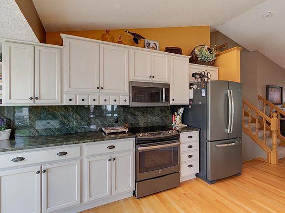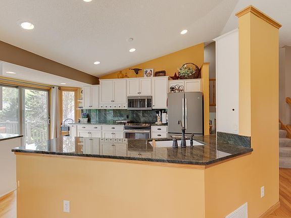 Meticulously maintained, inside & out! As you enter the home, you'll notice the wide open concept vaulted family rm, dining and kitchen loaded with natural southern exposure. Sure to impress 16 x 14 4-season porch off the dining area has newer Andersen Windows and patio door. Newer kitchen cabinets, granite, lighting and appliances. Upper level you'll find the owner's suite with two closets, spacious bathroom tiled shower & separate soaking tub, dual vanity and linen closet. Nursery connects to owner's suite (non-conforming 4th bedroom) also makes a great office/flex space! 2nd bedroom completes the upper level. Walkout ground level has expansive living room with wood burning stone fireplace, access to the 2-tiered sprawling deck and botanical garden like backyard! 3rd bedroom and bathroom complete the walkout level. You'll find the laundry - new washer and dryer and mechanicals in the unfinished lower level w/ lookout windows and plenty of room to expand. EZ access to 35-W and Cedar