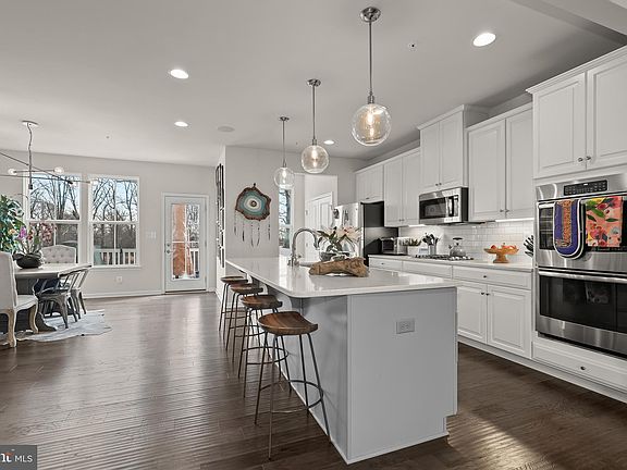 The largest model in the neighborhood, this absolutely remarkable like-new turnkey four bedroom townhome in the sought-after Ballard Green neighborhood showcases sun-drenched windows, tall ceilings, updated lighting fixtures and spectacular details throughout. The main level highlights a modern open-concept floor plan with hardwood floors, a neutral color theme and a speaker system in the ceiling. Prepare your favorite meals in the exquisite kitchen that is fully equipped with stainless steel appliances including an upgraded refrigerator, gas cooktop and double wall oven, quartz countertops, tile backsplash, 42” cabinets, pantry and massive center island. Off the kitchen is a convenient office nook with a desk and the dining room is spacious enough for entertaining guests with access to the oversized deck with outdoor speakers. Kick your feet up and relax in the light-filled living room area that can accommodate any size gathering. Upstairs, the primary bedroom suite awaits with a large walk-in closet, views of the woods and a luxurious private bathroom adorned with a dual-vanity and a glass-enclosed walk-in tile shower with double shower heads. Another two bedrooms, a second full bathroom and a custom laundry closet complete the upper level. The finished lower level provides access to the two-car garage with custom shelving, a third full bathroom and an expansive fourth bedroom with doors to the rear yard that backs to trees. Brand new high-end, hypoallergenic carpet carpet on the top and lower levels with transferable 25 year warranty to the buyer. Garage door opener just replaced it and has a three year warranty. Energy-efficient tankless water heater, wooden privacy blinds throughout, upgraded counters and cabinets in the kitchen and all bathrooms and hardwood floors throughout the main floor and all stairways. Enjoy the excellent community amenities including a club house, outdoor pool, playground and a wonderful location close to an array of restaurants, shopping and entertainment options.