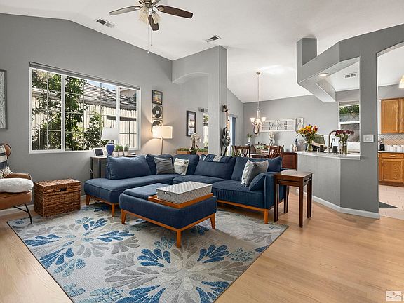Charming Updated Home in the Gated Community of The Meadows – South Reno! Tucked inside the serene community, this beautifully updated single-level home offers comfort, convenience, and a touch of nature at your doorstep. Featuring 3 bedrooms and 2 bathrooms, the home has been lovingly maintained and is move-in ready. Step into the cozy backyard where you’ll find fruit trees—perfect for enjoying fresh fruit in the summer, and room to plant your own garden., The community offers exceptional amenities, including a sparkling pool, relaxing hot tub, fitness center, and front yard landscaping services. Just beyond your door, enjoy direct access to scenic trails, open common areas, and breathtaking panoramic mountain views—a true retreat in the heart of town. Whether you're downsizing, buying your first home, or seeking a peaceful place to settle, this delightful property checks all the boxes!
