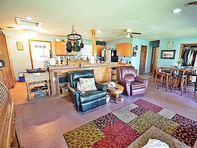 Perched on a Hill, Private! This 1300 SF (per CH), 2 Bedroom, 1.5 Bath brick home has an open floor plan, excellent natural light, large master bedroom & tons of potential! Sits on 2 acres w/ small fenced area for horse or cow! No restrictions! Unique 2 story storage, all located off paved road w/ privacy & fruit trees.