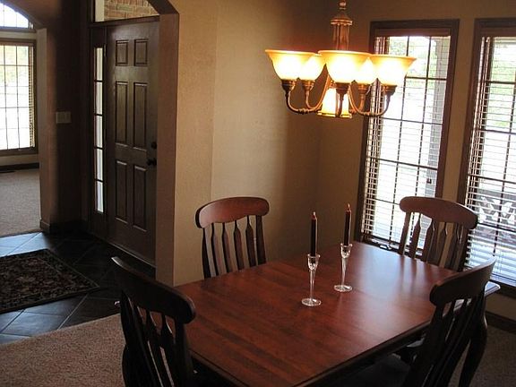 Beautiful custom built home with five bedrooms, 3 1/2 bathrooms near Otter Creek Golf Course on 1.48 acres. Main floor has an open floor plan with hardwood floors. Beautiful kitchen has rustic maple cabinets, Corian countertops, and double oven. Huge Master Bedroom with large Master bath and walk in closet. Huge finished basement has a large family/play room with movie screen and projector, and also a 5th bedroom and full bathroom. Large back yard includes composite 20'X20' deck with pergola, and large 28'X40' detached garage. Garage includes air compressor, electrically connected an and water. Must see!