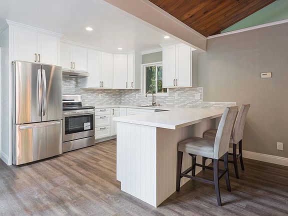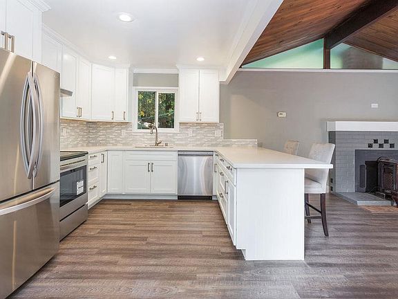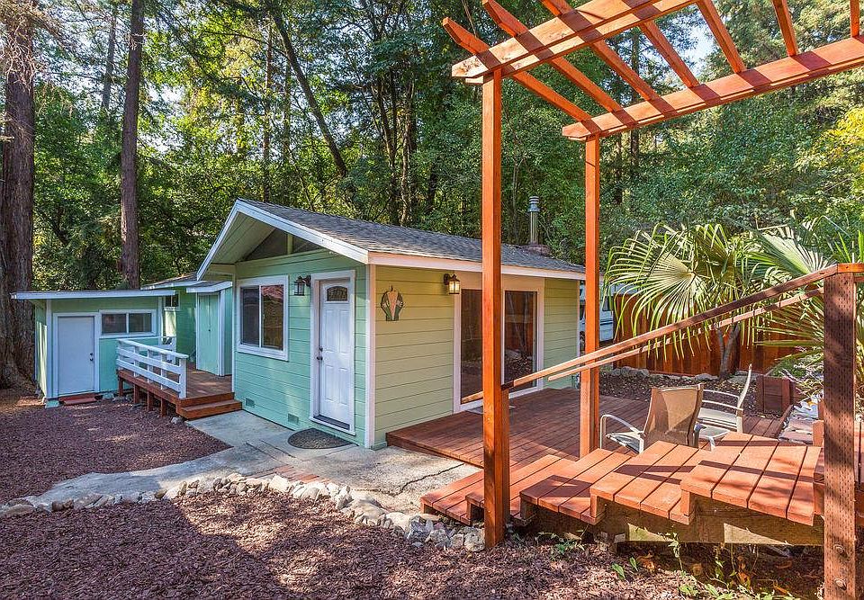 Top Notch Remodel in Beautiful Creekside Setting. Paint has barely dried! Gorgeous, tastefully designed kitchen with stainless steel appliances, quartz counters, 8 ft. breakfast bar and glass and marble backsplash. Living room with open ceiling and gas stove. Modern waterproof plank floors throughout. Bathroom with Italian tIle. Updated electrical. Cedar lined closet. Three recently built redwood decks to enjoy the surrounding outdoors. Back deck from master bedroom overlooks the Zayante Creek, a year round stream that provides for calm sounds and views. Separate 8 x12 artist studio, craft or workshop. Great location on East Zayante Rd, close to Zayante Market, 6 min to popular downtown Felton, 20 min to Santa Cruz Beaches, and approximately 30 min to Los Gatos via Upper Zayante Rd and HWY 35.