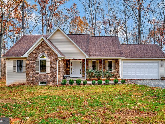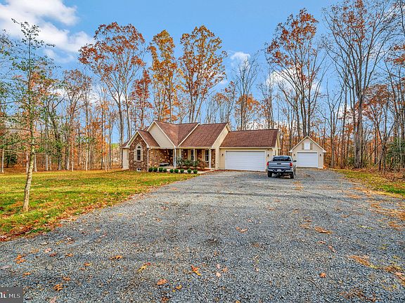Only two years old, this beautiful and charming New Dennison style rambler is on 2.35 acres with a front porch, back deck, 2 car garage, and matching equipment/storage shed in the quiet, rolling countryside. This custom rambler is perfect for a country-living family or couple starting out or empty nesters looking to downgrade in house size. The 2.35-acre property is nestled just a stone's throw away from Granite Heights Winery but also with secluded privacy in the woods. Sit on your back deck and watch the deer in the morning while enjoying a cup of coffee. And great location-just 4 miles from Route 15 and 6 miles from the town of Warrenton. Large, open, galley kitchen. Off white, color KraftMaid cabinets with upgraded quartz counter tops. Beautiful hardwood floors installed throughout first level. Custom trim, tilework, and beautiful lighting throughout. Fully finished, walk-out basement with tons of hidden storage and shelving space. 2 brand new gas fireplaces, one on each level. State-maintained Road (South Pines) but not the driveway. Driveway is shared. HIGH SPEED INTERNET