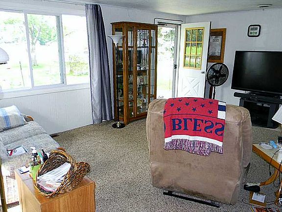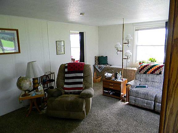 3 bedroom 2 full bath manufactured home with 24x41 heated garage with a workshop. Large family room with a fireplace and office. Nice shaded 3/4 acre lot with many mature and fruit trees. Some updates and great country setting. About a mile from New Knoxville on the east side of town.