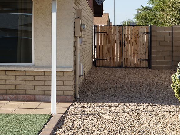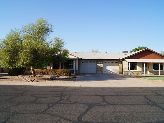 Gorgeous 2-bedrooms 1.75-bathroom twin home with a 2-car garage and low maintenance yard in desirable Sun Air Estates 55+ Community. The kitchen has a refrigerator, electric oven, dishwasher, and built in microwave. Large primary bedroom with walk-in-closet with a bonus/sitting room. Second bedroom is over-sized and has exit to the back yard with covered patio. The laundry is in the extended garage with plenty of storage cabinets. The front yard has low maintenance artificial turf. This home is Walking distance to community pool, recreation center. Close to Westgate shopping, sports arenas, Desert Diamond casino, medical facilities, theaters, hospitals and more.