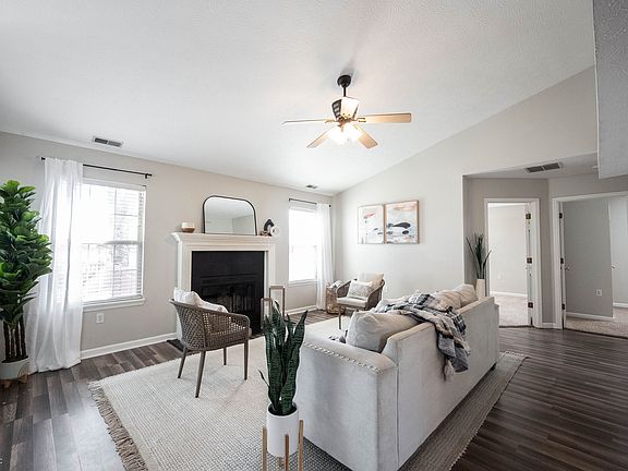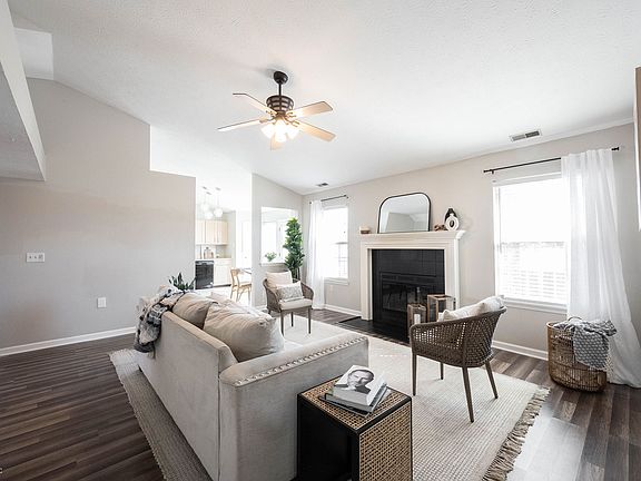 WOW! Steps from Cumberland Park in Fishers. Wonderful neighborhood in the Bradford Ridge Community. This split floorplan with side load garage is ideal with 3 bedrooms and 2 bathrooms. This ranch style home features neutral paint throughout, a wood-burning fireplace, soaring ceilings with natural light, and updated laminated hardwood flooring. Kitchen offers a dishwasher, new stainless steel appliances including refrigerator, range and hood; 2 pantries provide extra storage; natural light also floods the kitchen with access to a fully fenced backyard. Off the kitchen is a large finished deck for entertaining in the summer or relaxing in the fresh air. Primary bedroom with ensuite includes tub/shower combo, sink, vanity area; and walk-in closet. 2 sizeable guest bedrooms with great closet space and a second bath completes this gem. Brand new furnace and water heater installed in 2024. Laundry room connects to garage entrance. 2-car attached sideload garage with shop table. Property taxes will significantly reduce once new owner files exemptions. Location is close to shops, restaurants, Fishers Event Center and Interstate 69. Fantastic HSE Schools.