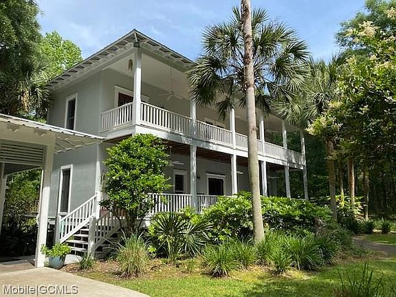 Tucked back on 3.28 private acres, this British Colonial style home offers buyers the feel of a permanent vacation. Although this property sits just minutes from I-65, local conveniences, and waterways, it feel worlds away from the hustle and bustle. Buyers will never want to leave home here, enjoying the southern breeze and lush tropical landscaping from the double balconies, it's like Hemingway's retreat. Just imagine opening the windows and enjoying the sound of rain on the metal roof. This home offers the desirable coastal color palette with hardwood (oak) floors through out, with exception to the bathrooms and laundry room, which are tile. The two way wood burning fireplace is the focal point of the living and dining rooms, and the soaring ceiling above, along with the windows allow for the perfect amount of natural light that filters through a canopy of trees. There is a spacious back deck with a hot tub for evening relaxation. This home offers recessed lighting in the main living areas, granite countertops in the kitchen, a gas range, a tankless water heater and gas generator. An additional 3 acres adjacent to this property is also available to buyers of this home ONLY. This property is a one of a kind opportunity, so call today for your showing appointment or to receive a link to the 3D Virtual Tour.