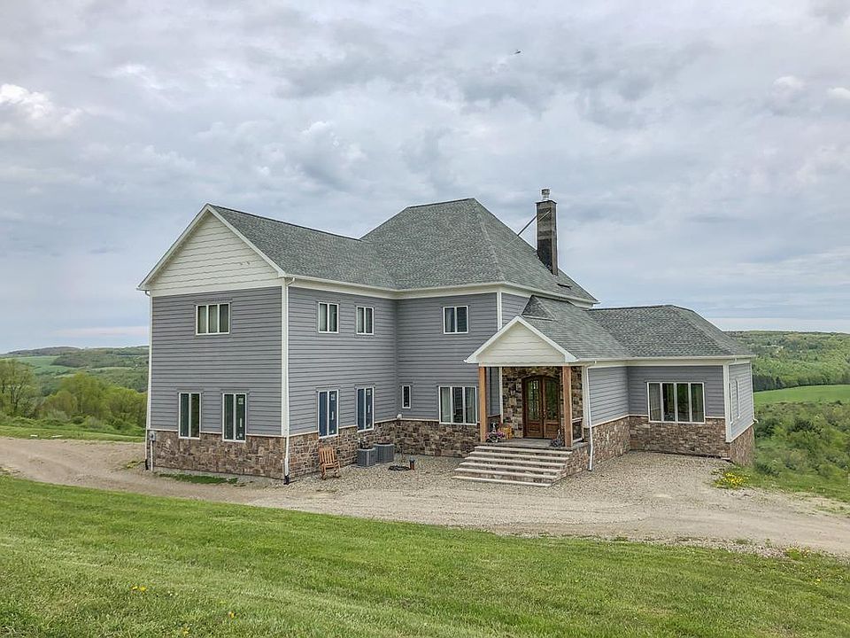 Completely Custom built GORGEOUS home! This incredible 5 bdrm, includes master suite on first level, 5.5 bath home sits on 32.50 acres with an AMAZING view! The unbelievably awesome open concept kitchen has Amish built cabinets, Marble countertops, a fabulous walnut island, that is simply beautiful, a large & unique custom built hood, & formal dining room all surrounded with lovely elegant lighting. The flooring throughout is Maple hardwood, featuring a sprawling staircase with a handmade wrought iron banister, very cool plaster fireplace, cathedral ceilings.