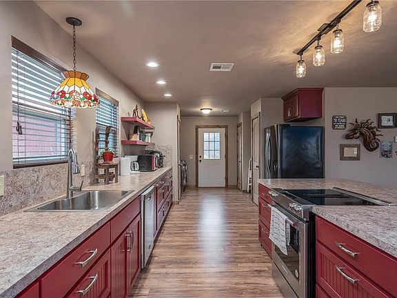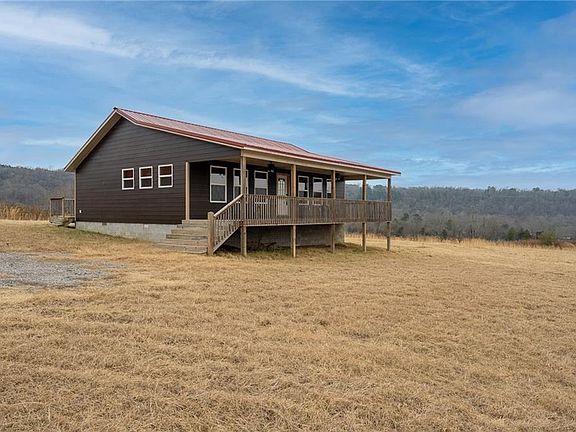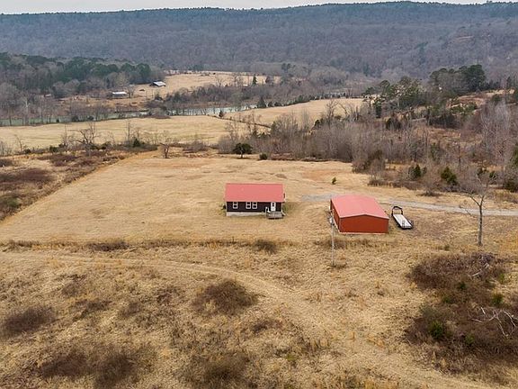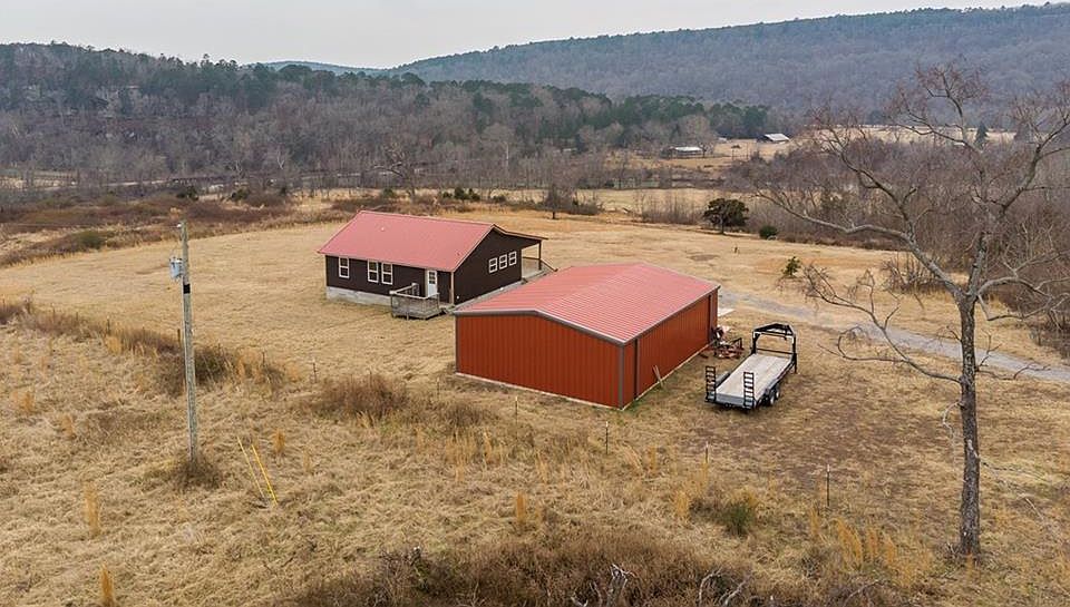 Awesome 1200 sq. ft. 1 bedroom, 1 bath rustic cabin with central HVAC, all electric, rural water, awesome view of Frog Bayou, woods, cleared, wildlife, 30x40 steel truss shop, all fenced, perfect spot to build another home. Cabin built to add on. Home has 3 ft. wide handicap door access. Frame & concrete board construction.