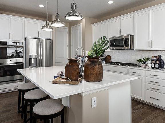 The lovely Liesel plan greets guests with a dramatic two-story entry. The main floor features a spacious great room with an optional fireplace and an inviting kitchen with a center island and adjacent dining room. There's even a covered patio! Upstairs, enjoy a convenient laundry, a relaxing loft and three large bedrooms, including a luxurious master suite with a walk-in closet and attached bath. An optional gourmet or chef's kitchen, deluxe master bath and finished walk-out basement are availab