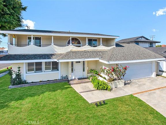 Absolutely Stunning, Beautifully Upgraded 5 Bedroom Home, with a Very Spacious Bedroom and Full Bath Downstairs is Located on an Extra Large Corner Lot with Side Gate to RV Concrete Parking Pad, on a Cul-de-Sac Street in a Highly Sought-After Fountain Valley Neighborhood with Top-Rated Schools. This Stately Home Stands Out from all the Others with its Captivating Curb Appeal, Showcasing Professional Landscaping. Large Shade Tree, Stacked Stone Raised Planter, Full-Length Second Story Veranda, and Custom Entry Door with Beveled Glass and Matching Sidelights. The Entire Home has Been Renovated with Newer Wood Laminate Flooring Downstairs, Plantation Shutters Throughout Home, Scraped Ceilings, Ceiling Light Fans, Raised Panel Interior Doors, Mirrored Closets, and Remodeled Bathrooms with Travertine-Style Tile Flooring, Corian Countertops, Upgraded Cabinetry, and Designer Tile Surrounds with Glass Mosaic Tile Inlay and Clear Glass Enclosures. The Upstairs Bathroom has Dual Sinks. The Bright White Kitchen has Been Updated with Newer Stainless Appliances, Tray Ceiling with LED Recessed Lighting, Stainless Sinks, White Cabinetry, Including a Spacious Pantry, White Tile Countertops, and a Breakfast Bar. It is Open to an Elegant Formal Dining Room with Newer Dual Pane Slider Leading to the Park-Like Backyard with Concrete Patio and Endless Lawn, Block Wall Fencing, Plus Many Fruit Trees, Including: Mango, Lemon, Man Cau, and Longan. Automatic Sprinker System Front and Rear. 2 of the Upstairs Bedrooms have Newer Sliding Glass Doors that Open to the Full Length Veranda/Balcony with Tile Decking and One of the Bedrooms has a Large Walk-In Closet. Close to the Beach, Excellent Schools, Parks, Shopping, and Dining.