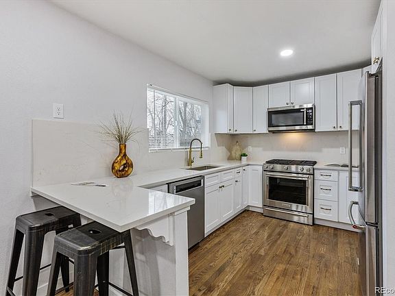 stainless steel appliances, beautiful quartz countertops, and soft-close shaker cabinets. With three living rooms, this home