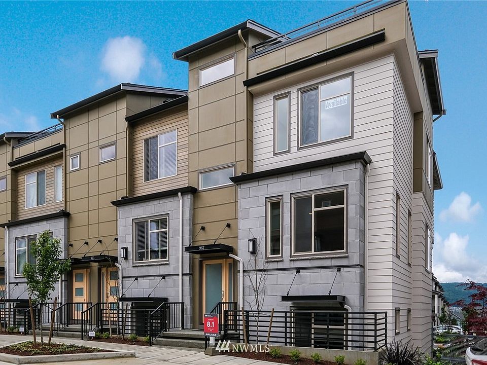 MOVE-IN READY End Unit at Westridge in Issaquah Highlands, by Taylor Morrison! The open concept F20 offers 2,299 sf, 3 Bdrms PLUS ground floor ensuite Den (4th bdrm), 3 baths+2 powder & 2-car garage. Gourmet island kitchen, master w/spa like bath & lux finishes throughout, incl. Quartz counters & hardwoods on main!Covered deck off main w/peek-a-boo Cougar Mtn view + top level Bonus w/another deck! Steps to Grand Ridge retail plaza... luxury, walkability & no maintenance, that's Westridge!