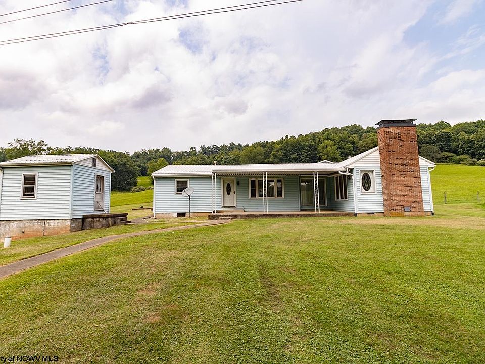 Peaceful and charming property sitting on 6.43ac. Open floor plan including 3 bedrooms, 2 living spaces, fireplace, large laundry room, and sunroom. All appliances remain with the property. 26x40 pole garage, 3 stall carport, and shed also convey. FREE GAS APO. Agents see remarks. Link to plat: https://mapwv.gov/parcel/?pid=17-12-0427-0030-0002