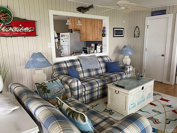 "The Rivah House": This Albemarle Soundfront cottage boasts the most stellar of unobstructed views where you can snag your favorite cocktail and watch the sun go down! Located in the small community of Bulls Bay, this cute cottage offers quiet waterfront living. This home has two bedrooms and two bathrooms. Property includes a pier. Come home and enjoy grilling out and watching the sunset on your screened in porch. This home is being sold furnished, making it move in ready, and a golf cart is even included in the deal! A private boat ramp is just down the road, owners charge a fee for use.