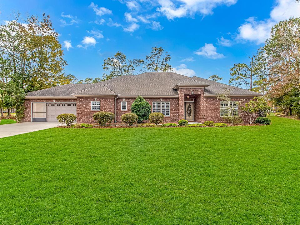 PREMIUM LOT, GOLF COURSE VIEWS, TWO MASTER SUITES! Tucked away on a cul-de-sac, overlooking the second fairway of the highly sought after Long Bay Club community sits a truly rare find. This all brick, estate style home makes tasteful use of the more than ample living space with a perfectly laid out floor plan. High ceilings throughout, including tray in the living room, kitchen, and dining area, add character and detail to an already endless list of upgrades. The living options are multiplied with a second master suite and en suite in the front wing of the house with large walk in closet and lots of natural light. This home was designed for entertaining with an enlarged open kitchen with rolling island that spills tastefully into the dining room and oversized living room space. Closet space and storage come in no shortage on this gem and this home also includes and large Carolina room and a massive oversized screened in porch keeping the amazing golf course views as the focal point. The laundry room on this home will give you a new love for doing laundry with space, a wash sink, a refrigerator, and even a spacious half bathroom. A fully epoxied, screened ready, two car garage give plenty of space for parking and storage as well. Location is always key and this beauty puts you minutes from all the shopping, dining, entertainment, and sandy beaches North Myrtle Beach is famous for while giving you the neighborhood feel on an awarding winning Jack Nicklaus golf course. The good ones never last long so book your showing today and as always WELCOME HOME!