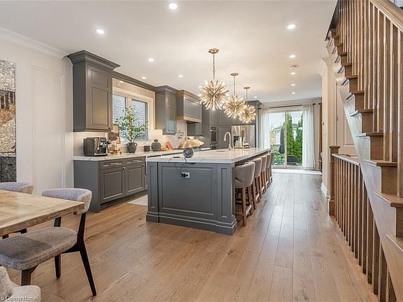 Welcome to 967 Coulter Way—a home that doesn’t just meet expectations, it shatters them. Nestled on an ultra-quiet street in Milton’s coveted Beaty neighbourhood, this one-of-a-kind residence results from an uncompromising vision. Thoughtfully reimagined from top to bottom, every inch has been meticulously designed with handpicked finishes, premium upgrades, and timeless design, creating a living experience that feels more boutique hotel than a suburban home. Upon entering, you’re greeted by nine-foot smooth ceilings, wire-brushed white oak hardwood and architectural details that exude warmth and sophistication. The powder room feels like a work of art, featuring a sculptural Kohler bronze sink and high-end wallpaper. At the heart of the home lies an extraordinary chef’s kitchen—anchored by a 15-foot quartz island and equipped with top-tier KitchenAid and Dacor appliances, custom cabinetry, and thoughtful storage. This space is meant to be lived in, loved, and showcased. Upstairs, the primary suite is a sanctuary. A walk-in closet with built-ins, elegant wall trim, and bedside pendant lighting leads to a spa-inspired en-suite: a freestanding Virta tub, a triple-control Rubinet shower system with body sprays, and a private water closet—all brought together with rich textures and lighting that create a calming retreat. The fully finished basement adds even more luxury, featuring a custom wet bar, recreation room, full bath with natural finishes, and flexible space for guests or quiet evenings. Outside, the magic continues with professional landscaping, patterned concrete, a widened driveway, a covered porch, and an Arctic Spa hot tub with an automated water care system. This home is not like the others. It's an opportunity to own something truly elevated—crafted, curated, and unforgettable.