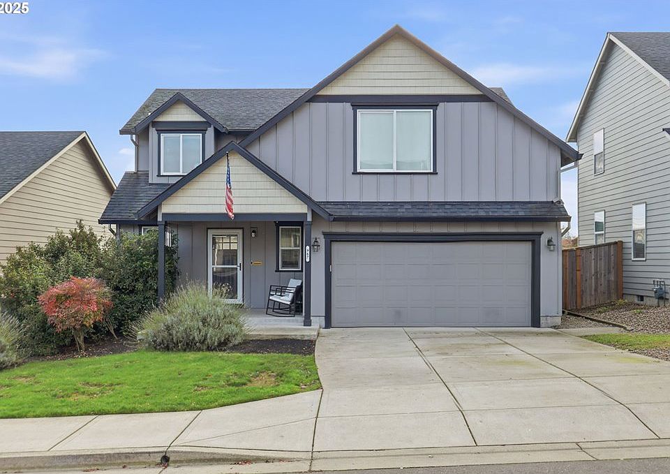 Welcome to your dream retreat in the heart of Lafayette, one of Oregon’s most enchanting wine-country towns. Tucked into sought after Frontier Meadows neighborhood, this beautiful 2016-built home offers the perfect balance of modern comfort and small-town serenity — ideal for someone who wants space, style, and that warm, community-centered lifestyle. As you step inside, you are greeted by a bright, open-concept main floor that seamlessly blends the living, dining, and kitchen areas — all bathed in natural light. The kitchen is a delight for both everyday living and entertaining: knotty alder cabinetry, tile countertops, stainless steel appliances, and a generous eating bar that invites casual meals, holiday brunches, or late-night chats with loved ones. Head through sliding doors from the dining area into your backyard sanctuary: fully fenced for privacy and peace. Imagine crisp evenings sipping wine by the fire under the stars, or weekend gatherings where laughter fills the air. Upstairs, find a peaceful primary suite complete with a walk-in closet and full bath — a perfect retreat after a day of exploring. Three additional bedrooms give you flexibility for guests, a home office, or whatever your life needs. This home truly supports a balanced lifestyle: entertaining, relaxing, working — all under one roof. Living here means more than just owning a home — it’s about belonging to a warm and historic community with a slower pace, abundant charm, and scenic beauty. Lafayette sits in the heart of Yamhill County’s wine country, surrounded by rolling vineyards and boutique wineries. Schedule your tour today!