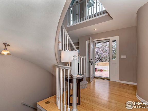 PRIME, PRIVATE and QUIET cul-de-sac location backing to open space and walking trails. Impeccably cared for home with large, beautifully landscaped yard and expansive views all the way to Longs Peak. SO many features to list... Beautifully finished bamboo hardwood floors, open and light kitchen with granite countertops, glass tile backsplash, stainless steel appliances, freshly painted cabinets, nice sized pantry, attractive gas range, built -in desk and windows overlooking the open space. Enormous trex deck with hot tub, gazebo, gas grill, total privacy and vast VIEWS! Other features include solar system (owned, not leased) vaulted and inviting front entry with staircase, new fixtures, new doors, large family room with fireplace, great use of windows, formal dining and living rooms and main floor office. Four bedrooms up with a totally remodeled primary suite with a GORGEOUS bathroom, radiant heat floors, extensive use of lovely tile and the perfect walk-in closet. Walkout basement has a open and light rec room with fireplace, bedroom with French doors, bathroom and storage area. The exterior of this home has such pretty curb appeal, flagstone patios, walk ways, garden beds, perennials with vibrantly bright peonies, and mature trees (including fiery maple in the front yard) perfectly situated for extra privacy. Close to open space, parks, trails, ponds, schools, neighborhood pool, tennis and even close enough to walk to "downtown"!