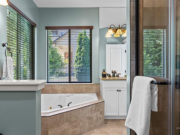 Situated in the coveted Southeast Boise community of Promontory Ridge, this home is perfect for both family living and entertaining. Built with four bedrooms, it provides ample space for a growing family. The expansive great room flows seamlessly into a covered patio and lush backyard, ideal for hosting gatherings and outdoor relaxation. The master suite, with its private patio access, walk-in shower, and spa-bathtub, serves as your peaceful haven. Upstairs, a built-in study offers a perfect spot for homework, while an additional bonus room creates the perfect entertainment hub. The community features a neighboring park, swimming pool, sand volleyball court, and basketball/pickleball court. Plus, Boise’s top outdoor adventures are just a short drive away, ensuring a lifestyle of adventure. Living in Southeast Boise provides a relaxed and active lifestyle, defined by genuine neighborhood pride.