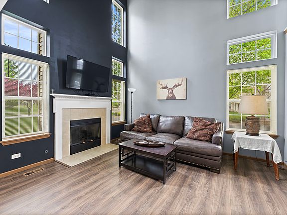 Stunning end unit in Cambridge Lakes! This unit won't last long. Main floor features a 2 story living room with soaring ceilings, fireplace, eat in kitchen with pantry, and half bath. 2 car garage and patio. Upstairs features brand new carpet and some fresh paint. The spacious primary bedroom has a walk-in closet and a private bath with plenty of storage. Nice guest bedroom and additional full bath. Upstairs laundry is super convenient. Don't miss out on this unit!