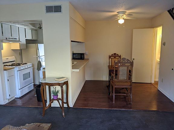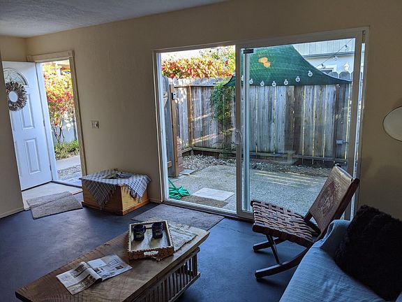 South facing end unit that is freshly painted on the inside. Original popcorn ceilings have been professionally remediated. Located in the back of the Hilby Townhouse Association complex, away from the street lending to peace and quiet in a private setting. A large open deck off of the master bedroom brings in light and sunshine through the sliding door. Large bedrooms with good sized clothes closets. Open main floor living space, encompassing the kitchen, dining area, and the living room with a sliding glass door that leads to a private garden patio. Wood floors in the kitchen and dining areas. The rest of the unit is ready for new carpet. Easy access to get in and out of this unit through the 2-car garage located behind the complex. Close walking distance to restaurants, the Oldemeyer Center, and the Pattulo Swim Center.