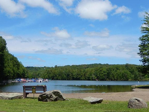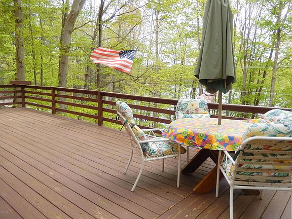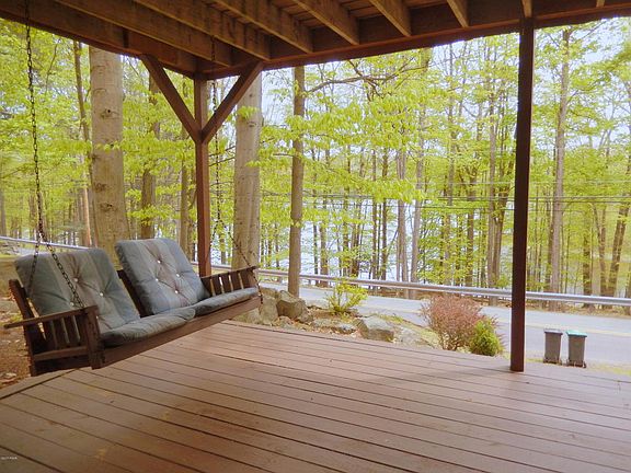 Indian Rocks seasonal Lake view (A technical waterfront). Prime walking location for swim beach, picnicking and boat docks on Lake Wallenpaupack. Vaulted prow front ranch features new ss appliances, plenty of natural light with glass walls and skylights, screened sun room, Living room wood fireplace, family room propane free standing stove, wrap entertainment sun deck and lower porch swing deck adds to outdoor entertaining, yard play and abundant parking for the whole family. Comes furnished including the dishes, pots and pans. Priced to MOVE!