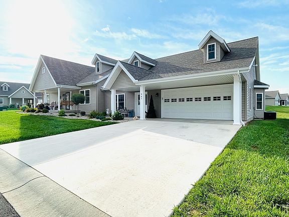 This quality built, nearly new condo located in Green Gables offers 2 beds, 2 baths and maintenance free living. The highly sought after duplex boast of modern finishes and is truly a must see. Featuring 1459 SF, this home is tastefully designed and offers an open concept, custom amish built cabinetry, lovely shelving on both sides of the fireplace, large closet spaces, and a kitchen bar. You will love the convenience of the two car attached garage.