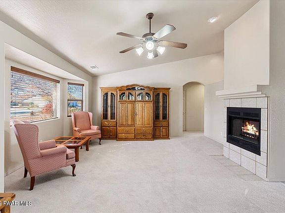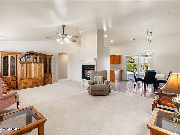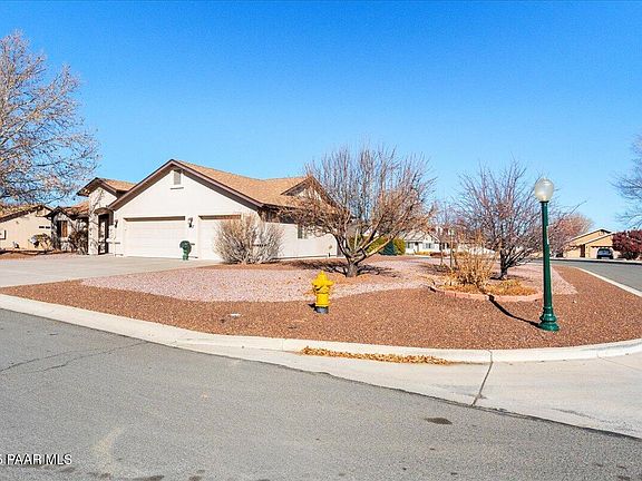 HUGE PRICE REDUCTION means this wonderful home is now an AMAZING OPPORTUNITY! Minutes from Prescott, but with a quiet, Small Town vibe - You'll feel you've gone back in time. Located in the lovely Parkside Village Community, this darling home has such a beautiful setting! Private corner lot has expansive green grassy yard, fruit trees, flower gardens and a lemonade worthy, extended paver porch. The house features a wonderful split floorplan with bay windows, freshly carpeted floors, vaulted ceilings, walk-in pantry, oversized 3 car garage and HVAC! Primary has garden tub, walk-in shower and large closet. Enjoy the nearby hiking, parks, quaint farms and restaurants in your charming, new ''Mayberry in Arizona'' home!