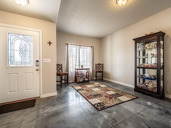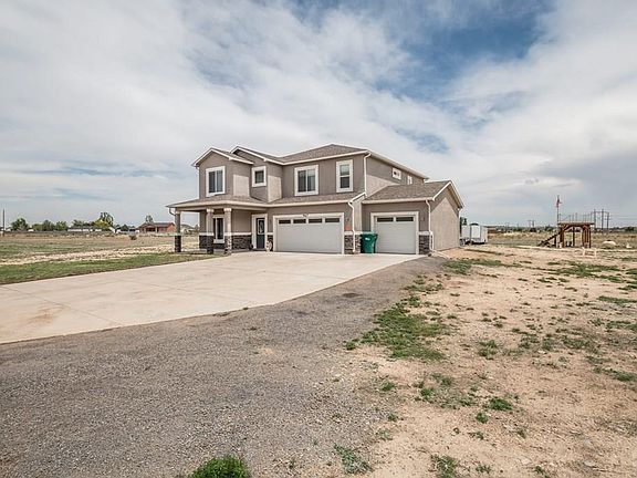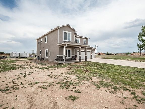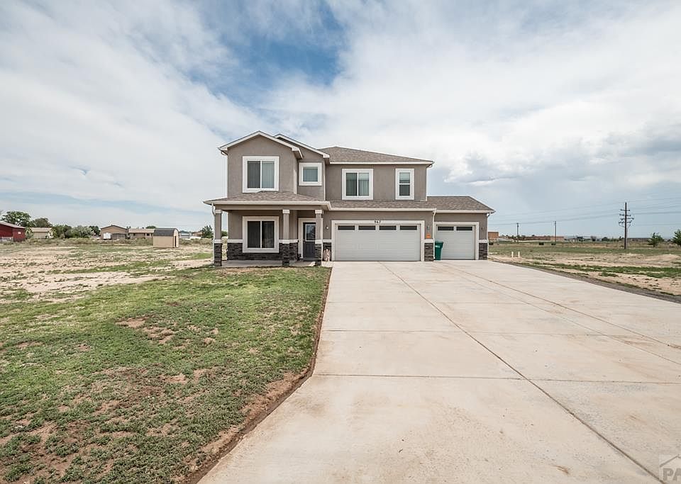 Take a look at the Pueblo West Acreage 2-story home featuring 4 bedroom/3 bathrooms with 3 car attached garage located on 2.05 acres in a Cul-de-Sac. Beautiful modern concrete stained floors on the entire main level and wood flooring throughout the rest of the home with hypoallergenic needs in mind. This home has tons of space to enjoy, with an area for a formal dining room and a kitchen nook. Open-concept kitchen and living room area made for entertaining. The kitchen includes black stainless steel (gas range) appliances, a pantry, and a breakfast bar. The main level has a living room, or spend your free time in the family/rec room located on the upper level. Primary bedroom features a walk-in closet, and the adjoining bathroom includes double sink vanity and a large walk-in shower. The laundry area is conveniently located on the upper level with all the bedrooms. The garage has a charging outlet for your smart car! Covered front porch. The elevated coliseum located in the backyard is perfect for outdoor recreation/entertaining. A hot tub and shed are included. Home is walking distance from several schools.