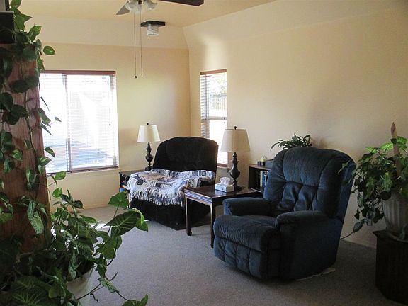 This well maintained home is located on a corner lot in Sunridge and shows very well. The kitchen offers tile counter tops, custom cabinetry and center island. There is a formal dining area and living room, as well as a cozy family room. There are two master bedrooms with bathrooms, plus an additional bedroom and full bathroom. The yard offers numerous trees, extensive sprinkler/drip system, storage shed, RV access, nice patio and views. Handicapped access and amenities including wide hallways & ramps.