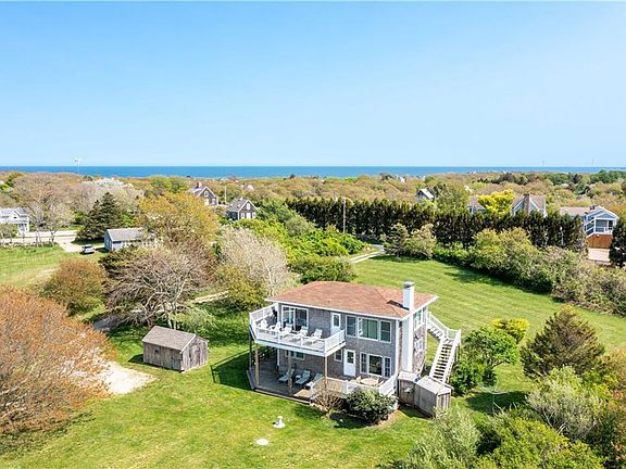 Enjoy amazing Atlantic Ocean views from this two-acre lot situated on West Beach Road. Expansive views of the Rhode Island and Connecticut coastlines and fabulous sunsets can be admired from the ¾ wrap around deck. Family favorite Mansion beach, miles of greenway trails and one of the best beaches to surf cast off are all in close proximity to this home. This lovingly maintained lot, has mature trees and a bonus shed for all your beach gear, bicycles and yard maintenance items. This upside-down house features an open living/dining and kitchen, half bath, guest bedroom and primary suite with full bath and deck access on the second floor. First floor has two bedrooms, full bath and great room with kitchenette. A five-bedroom septic system, gives you room to grow. So many options with this parcel, just open your imagination to the all the possibilities. Call for an appointment today.