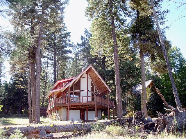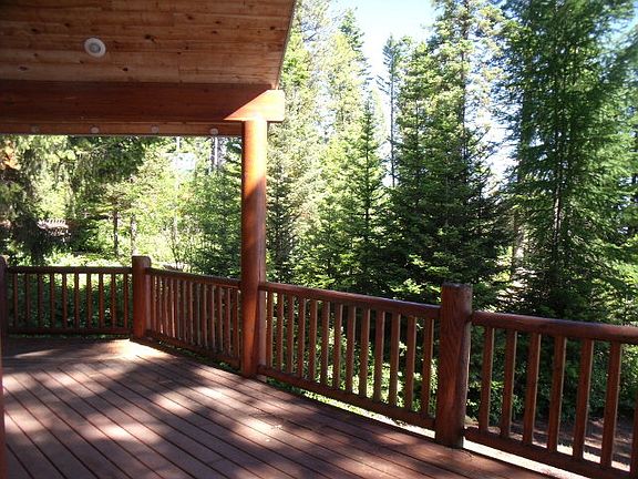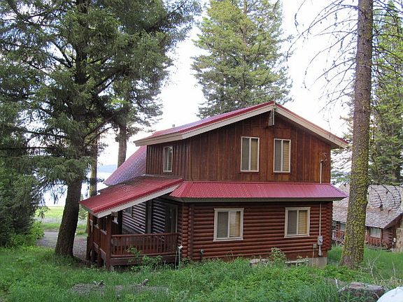 AWESOME LAKE VIEW WITH 2 BOAT SLIPS IN A PRIVATE MARINA! Set in the most spectacular area with private lake access across the street, public lands near by for unlimited recreation, 80 acre common area. Great log cabin has plenty of room for family and friends; 4 bed/2 bath, rock fireplace, breathtaking views from your living room, spacious deck, and covered hot tub. Two car garage one side is double deep..... YOU WILL FALL IN LOVE.