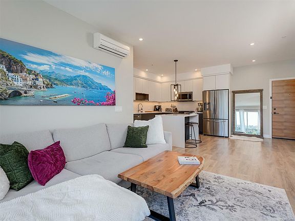Welcome to your stylish top-floor condo, a bright and spacious sanctuary on the quiet side of the building. The open-concept layout features a gourmet kitchen with a commercial-style gas cooktop, built-in microwave/hood fan, and quartz counters with a waterfall island that doubles as a breakfast bar. The living room features a linear fireplace, custom recessed lighting, and Euro laminate floors. Bedrooms are strategically placed on opposite sides for maximum privacy, and offer serene mountain views. The primary bedroom includes a luxurious ensuite and a large private balcony, perfect for your morning coffee. Bathrooms are elegantly finished with ceramic tile, stone counters, and high-end fixtures. This home comes with three A/C units, hot water on demand, a ductless heat pump, and a full-size washer and dryer. Enjoy secure underground parking, a storage locker, and the pet- and rental-friendly policy. Located in the desirable Florence Lake area, just minutes from all amenities.