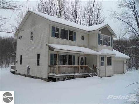 Two story home with attached 2 car garage in Lakes of the North. Main floor is open with large kitchen/dining and living rooms. Also a separate dining room, which could easily function as a family room or office. The full basement is unfinished. The upper floor has an open hallway with 4 bedrooms. The master suite has a walk-in closet and a private bathroom with jetted tub. The wooded setting includes 2 lots, and is a part of the Lakes of the North subdivision, with landing strip, community center, golf course and restaurant. The development is surrounded by state land. This home has some repairs needed, which will most likely disqualify it from financing with FHA or USDA RD loans. See attachment for PAS requirements and Wells Fargo Home Mortgage offer submittal information in MLS document section. (Click the little green "D" on this page)